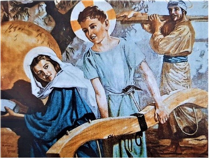 Jesús aprende de sus padres a ser un hombre que ama a todos y todas, está al servicio de los demás y trabaja en el Taller junto a su familia donde santifica y dignifica el trabajo ofrecido al Señor como oración.